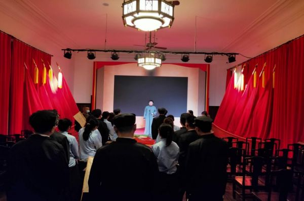 “沉浸式党课《曙光》”是参与者们沉浸到1948年天津解放前夕那段黑暗的岁月,换上旧时装束,化身成为地下党员与爱国学生亲手书写反战标语,参与反战游行,在被捕入狱惨遭迫害时仍坚信共产主义理想信念,在被严刑拷打时仍挺起共产党员的精神脊梁。