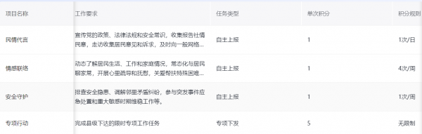 依托这一系统和积分评价激励规则,微网格长可以实时上报民情走访、安全排查等各类事件,社区和街道会第一时间通过后台知晓,及时响应解决,事件审核通过后可以获得相应的积分,并换算实物消费券,构建“需求发布—任务领取—评价积分—运用奖惩”的闭环机制。