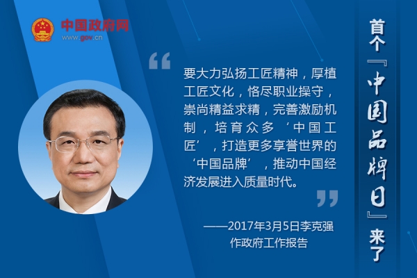 首个“中国品牌日”来了 | 7张图看总理谈中国品牌 2017-05-10 09:07 来源: 中国政府网 5月10日,我国迎来首个“中国品牌日”。2017年4月24日,国务院批复同意自今年起,将每年5月10日设立为“中国品牌日”。如何打造“中国品牌”?总理提出哪些要求?中国政府网用七张海报告诉你。 标签: 中国 品牌 总理 张图看 相关新闻 “相信中国民营企业将在全球市场展现更大活力” “辽・亮” 品牌焕新,这家央企把服务做成 “金色名片” 这些劳务新品牌,你知道吗?(经济新方位·从就业看产业) 探索发展银发经济的中国方案 王云松:坚持干字当头,确保党中央各项决策部署落到实处