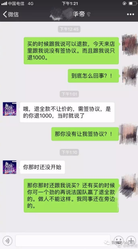 据现代快报报道,一南京消费者拿着订单和发票去退款时,被告知需要签署协议才能退款,这名用户表示,购买时商家未明示需签署任何协议。据长江商报报道,一武汉市用户购买了线下经销商指定的“夺冠套餐”,但最终经销商表示只能给其中一件产品退款,即只退总额的一半。