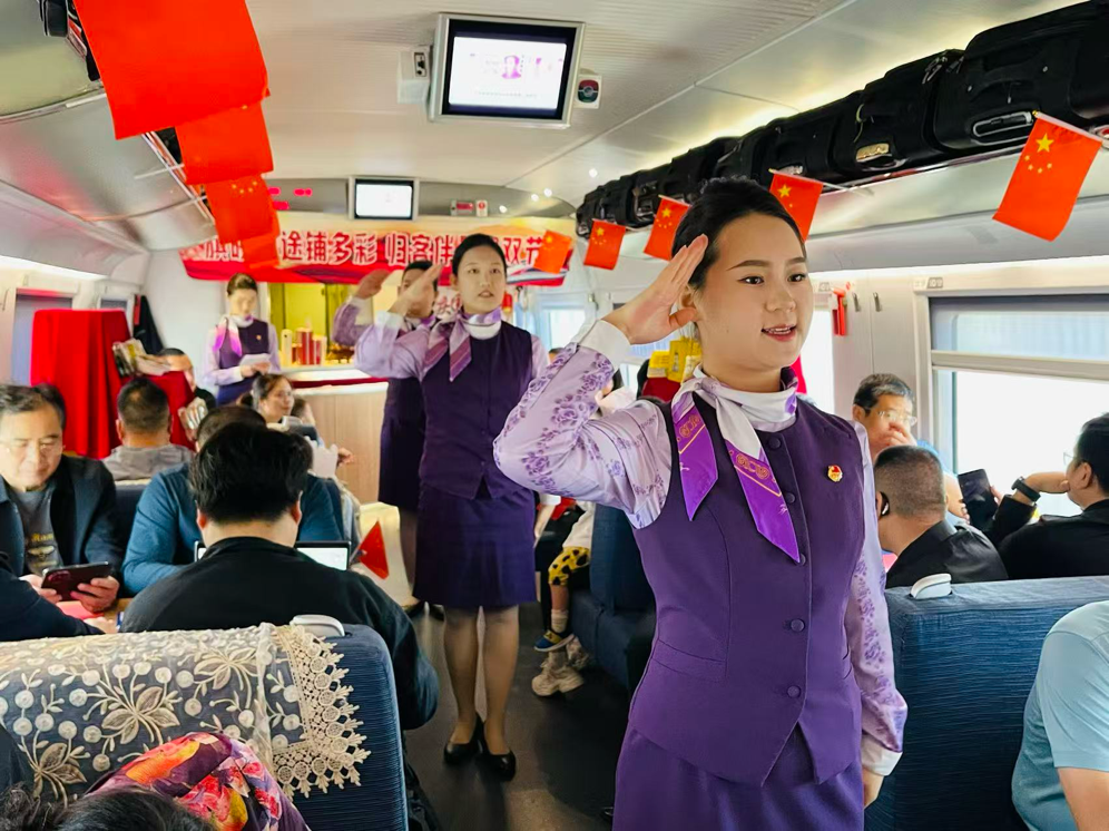 除了精彩的主题活动,节日期间列车的服务同样贴心。换乘指引清晰明了,重点旅客帮扶及时到位,餐车还备有丰富餐食供选择,全方位满足旅客多样需求,让大家在旅途中不仅能感受节日的热闹,更能享受到舒适便捷的出行体验。(济南广播电视台)