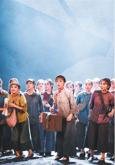 “船底舱”是全剧的重要场面。在黑暗逼仄的船底舱里,女子们蜷缩在最底层。船板上方一个小小的窟窿就是黑暗中的微风和希望,女子们在手的舞动中承载“向往”与“飞翔”。用音乐宣叙调组织领唱、独吟和群唱,抒发情感的丰沛张力。