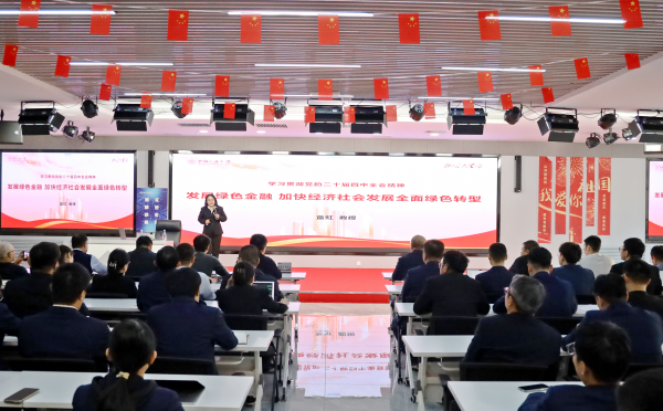 11月28日,由中国人民大学主办的“陕公大学堂”党的二十届四中全会专题讲座在北大荒信息公司举办,中国人民大学教授蓝虹作了“发展绿色金融,加快经济社会发展全面绿色转型”主题演讲。