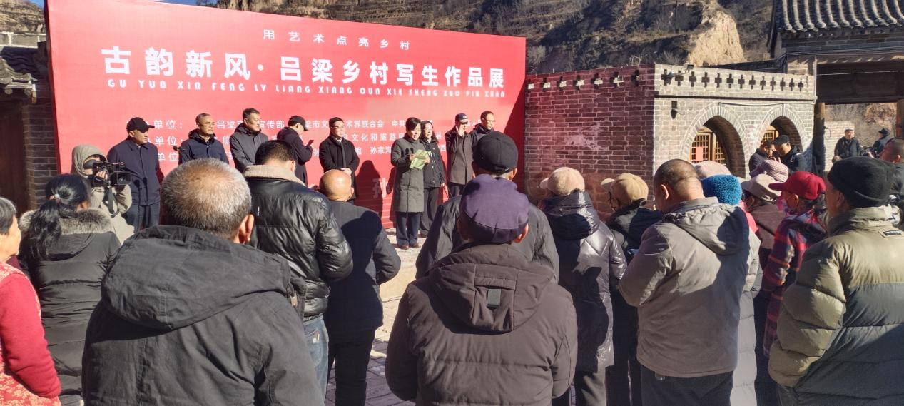 12月2日上午,由吕梁市委宣传部、吕梁市文联、临县县委县政府共同主办的“古韵新风·吕梁乡村写生作品展”在山西省吕梁市临县谢永增孙家沟艺术馆开幕。此次展览旨在响应吕梁市委打造乡村旅游重点村的号召,以艺术助力乡村振兴,用画笔记录乡情乡愁。