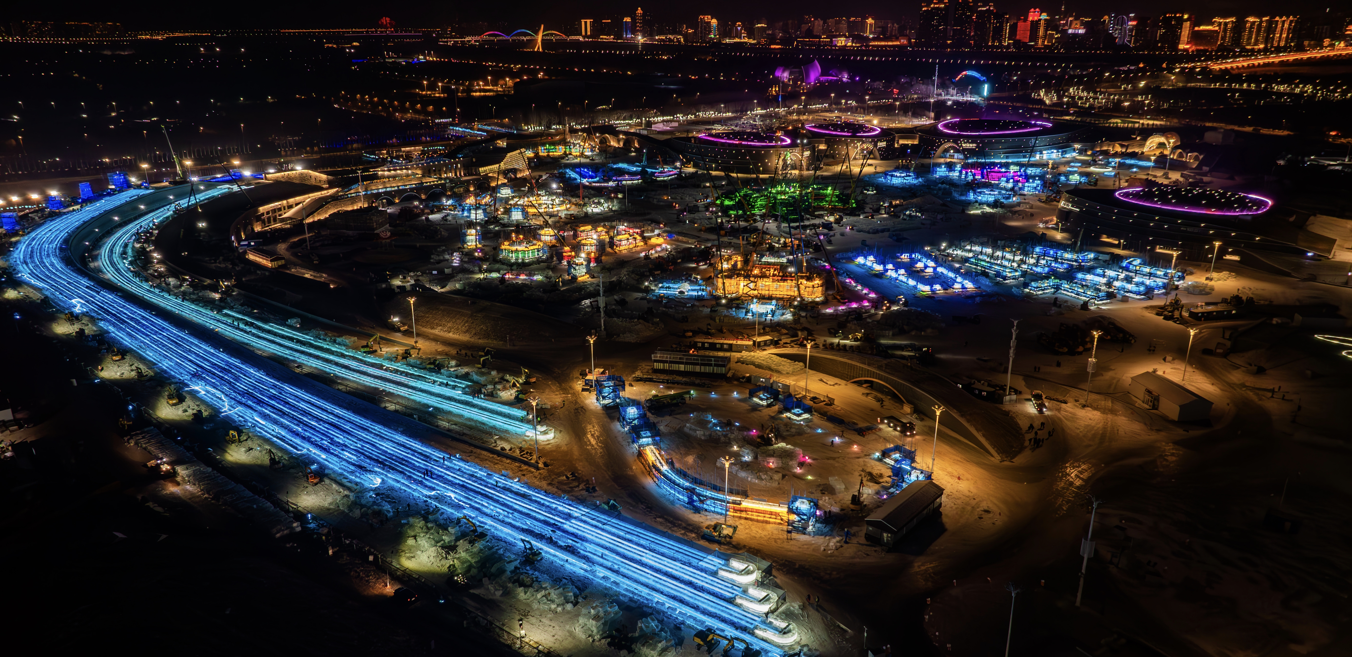 主形象大门复刻老哈尔滨火车站轮廓,镌刻百年枢纽的历史印记;中华巴洛克景观组唤醒冰城老字号记忆;梦想大舞台依托阳明滩大桥桥体,营造出建筑与艺术共生的独特场景;冰灯起源景观以丁香为型、光影为魂,诉说冰灯的发展脉络。
