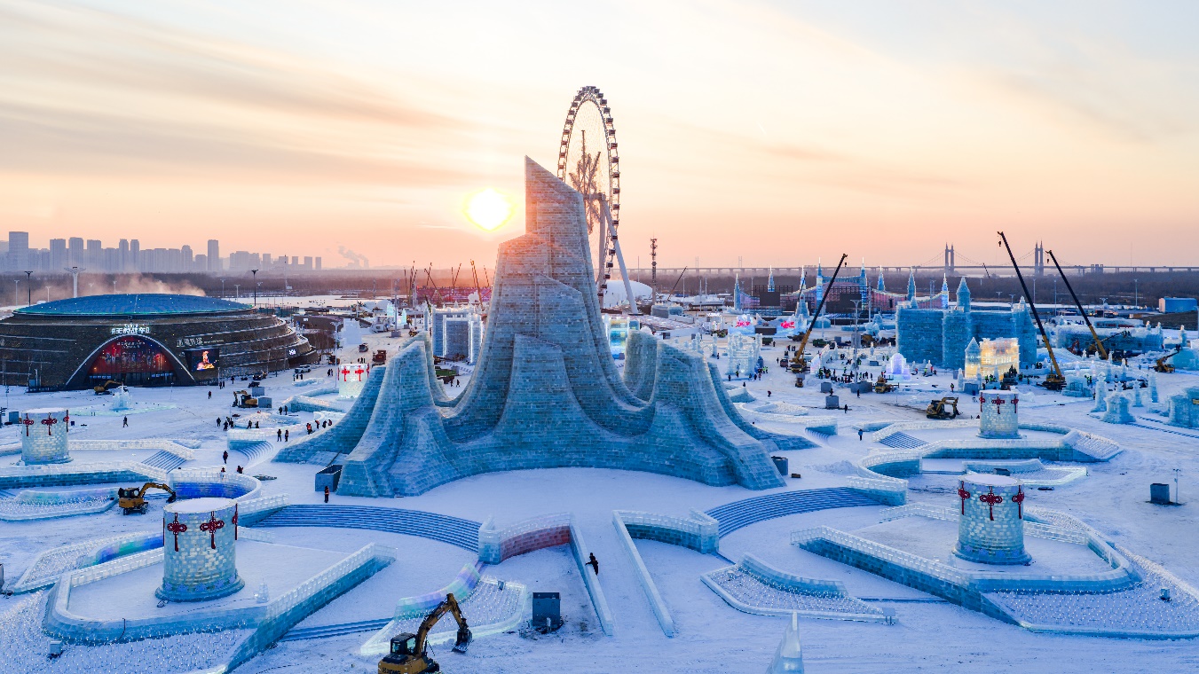 冰雕玉砌迎宾客,雪韵华章待君来。12月17日上午10时,第二十七届哈尔滨冰雪大世界将正式开园。经过数万冰雪建设者的匠心雕琢,园区景观已全面竣工,进入最后的场地整理阶段,一座融合了冰雪艺术、科技互动与多元文化的童话王国,正静待八方游客共赴这场冬日盛会。