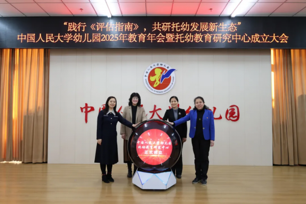 为深度践行《幼儿园保育教育质量评估指南》,聚焦保教内涵发展,中国人民大学幼儿园深耕实践研究,沉淀实践成果以赋能教师专业成长。作为北京市海淀区学前教育干部教师培训基地,中国人民大学幼儿园于2026年1月22日基于实践及研究成果举办2025年教育年会,同步成立托幼教育研究中心,旨在以专业研究赋能基地园活动,搭建交流协作平台,联动多方力量,持续践行《评估指南》、推动托幼一体化工作高质量发展。