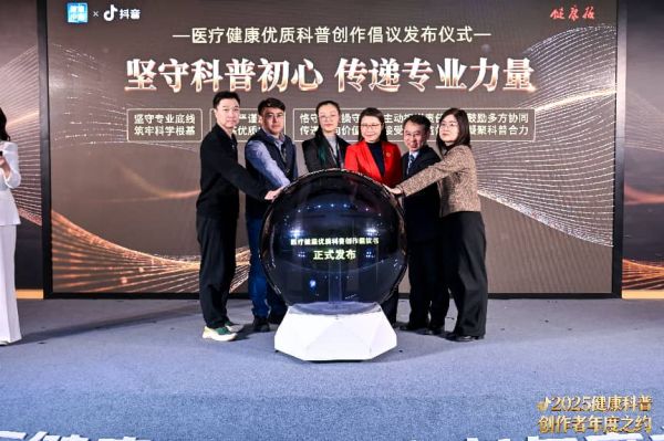 1月30日,由抖音携手健康中国政务新媒体平台、健康报社共同举办的“2025年健康科普创作者年度之约”在北京举行。健康报党委书记许培海、中国工程院院士詹启敏等专家领导,@医路向前巍子、@健康四川、@北京安贞医院等近百位个人和医疗机构创作者代表参加活动。活动现场抖音发布了“2025年度健康科普创作精选作品”清单,并联合创作者与合作伙伴共同发起“医疗健康优质内容创作倡议”。2026年,抖音将持续通过“健康中国”健康素养提升系列活动,进一步推动健康科普规范与创新发展。