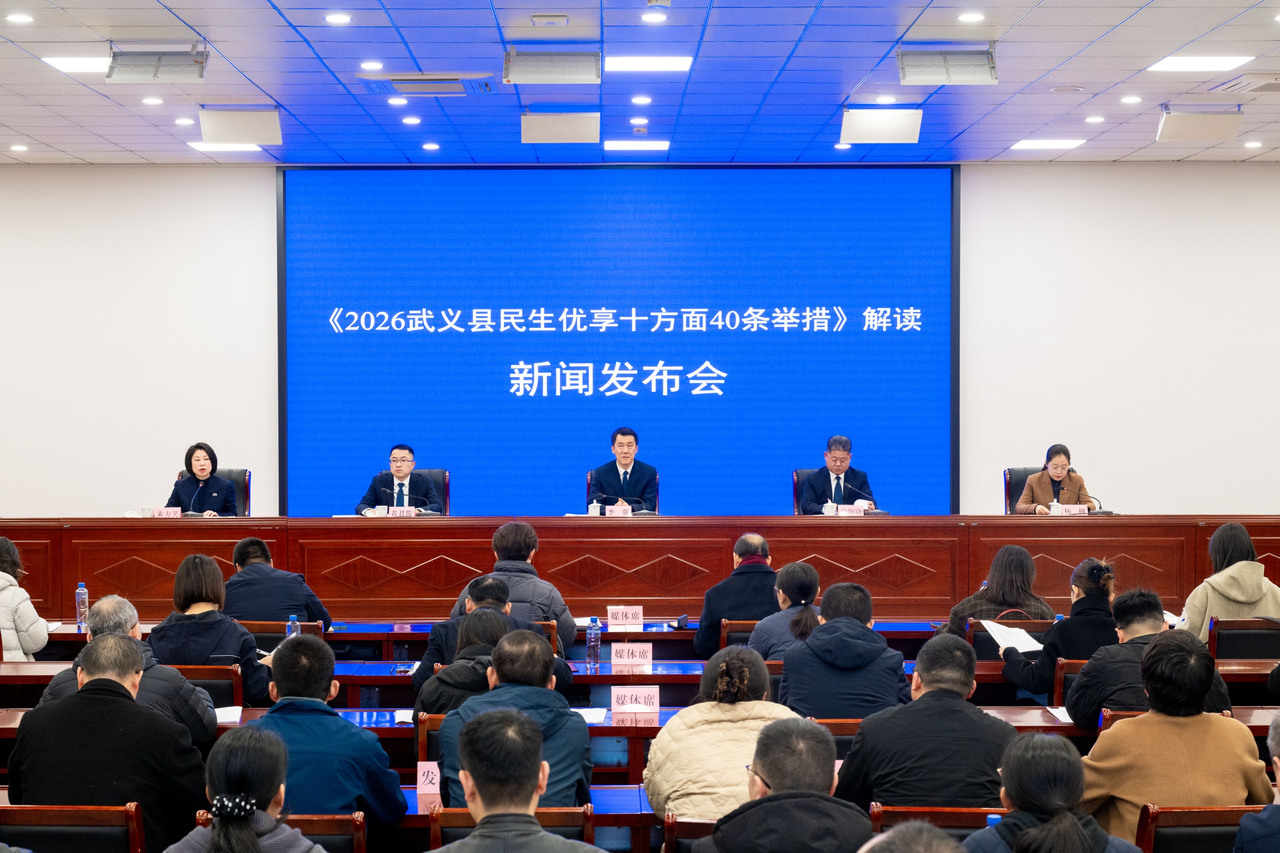3月4日,武义县召开《2026武义县民生优享十方面40条举措》解读新闻发布会。会上,武义县委副书记、县长李强解读《2026年武义县民生优享十方面40条举措》。