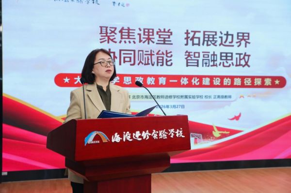 2026年3月27日,为全面落实党的二十大报告中“推进大中小学思想政治教育一体化建设”的部署要求,由北京市海淀区委教育工作委员会、北京市海淀区教育委员会指导,北京教育科学研究院德育研究中心与北京市海淀区教育科学研究院联合主办,北京市海淀区教师进修学校附属实验学校(以下简称“海淀进修实验学校”)承办的“思政教育筑根基一体化协同育全人”海淀区大中小学思政课一体化共同体第十组现场展示交流活动成功举办。本次活动在国家社科基金高校思政课一体化内容层次体系构建研究课题组、北京教科院优秀人才发展项目思政教育一体化“金课”的评价体系构建研究课题组专业支持下,以推动党的二十届四中全会精神进校园、进课堂、进头脑为重要任务,汇聚多方智慧共探思政育人新路径。